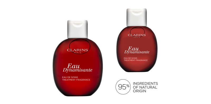 Eau Dynamisante, at the heart of nature, a unique blend of scented combination of essential oils and 7 plant extracts. Clarins excels in the art of using the aromatic and sensorial powers of essential oils… With its bouquet of citrus, cypress and delicate woody notes, Eau Dynamisante perfectly symbolizes this expertise. Its scented combination of orange, lemon, lavender and patchouli's essential oils give it a fresh, exhilarating scent which is subtle yet lingering and which revitalize, lifts the spirits and energizes.